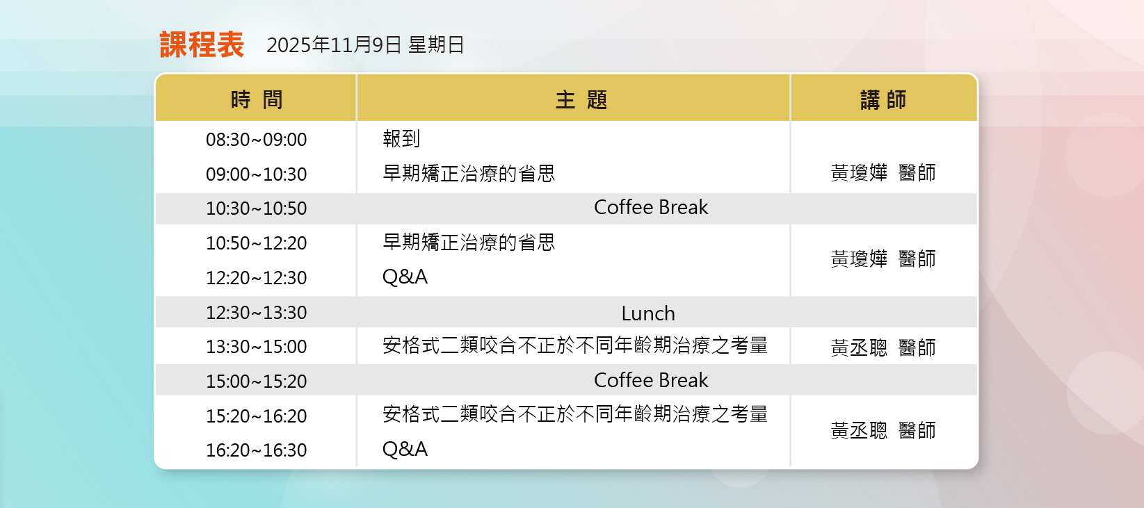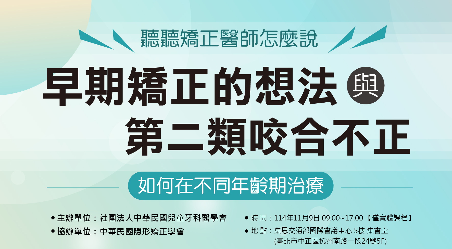 聽聽矯正醫師怎麼說:早期矯正的想法與第二類咬合不正如何在不同年齡期治療 - 社團法人中華民國兒童牙科醫學會第130次學術研討會