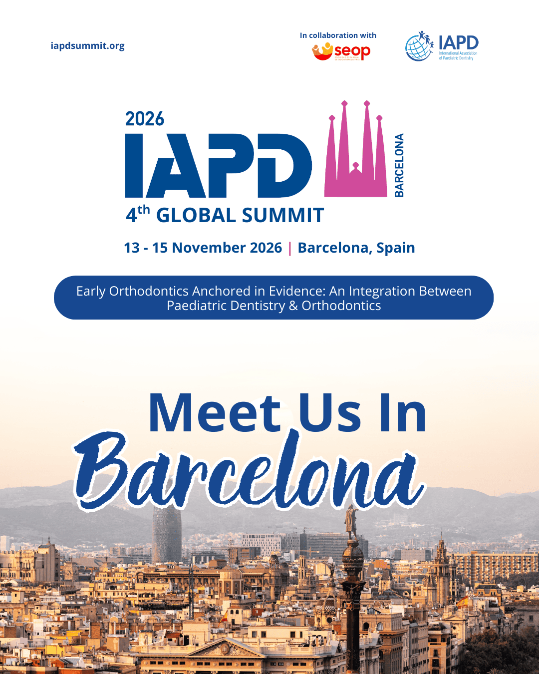 國際學術研討會 2026 第4屆國際兒童牙科醫學會全球高峰會 4th IAPD Global Summit 2026/11/13 08:00 ~ 2026/11/15 17:00 Barcelona, Spain 主辦單位 International Association of Paediatric Dentistry (IAPD) 課程時數 共 19 小時 活動收費 否 提供餐食 否 串連網址 https://iapdsummit.org/ 活動內容 繼續教育 課程代號/積分依據 兒牙專1150011號(甄審原則第11點第3款) 認定積分 本會兒牙專科積分22.8 認定時數 19 活動清單
