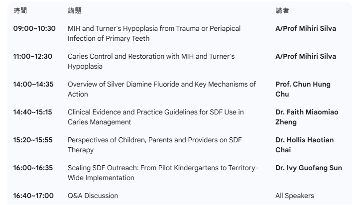本次研討會特別邀請澳洲墨爾本大學 Assoc. Prof. Mihiri Silva,以及香港大學牙醫學院 Prof. Chun Hung Chu 帶領的頂尖團隊,從環境因素探討到臨床實證,帶您將研究成果轉化為最具威力的臨床策略!