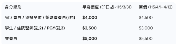 | 身份 | 早鳥 ( 2026/03/31前 ) | 原價 |